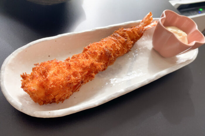 私はエビフライをいただきます。私はどちらかというと海老は火が通っているものが好みで、特にエビフライが好きですね。