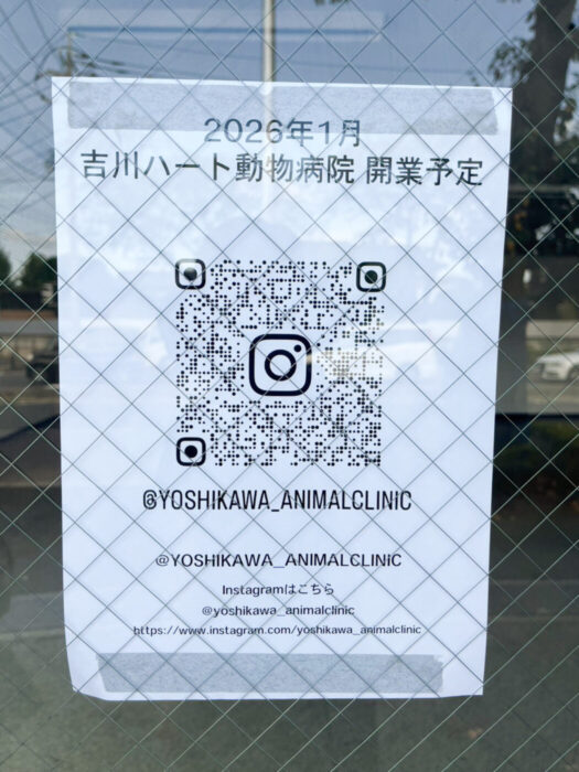 吉川市平沼1丁目に「吉川ハート動物病院」が2026年1月開院予定となっています。