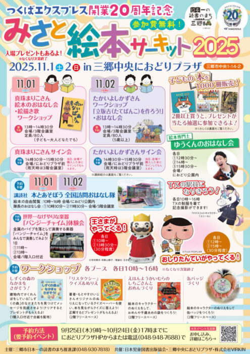 11/1(土)2(日)三郷中央におどりプラザにて「みさと絵本サーキット2025」開催!真珠まりこさん・たかいよしかずさんが登場する絵本づくしの2日間