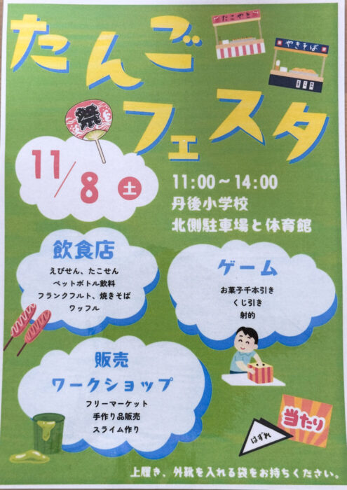 11/8(土)丹後小学校にて「たんごフェスタ」が開催されますよ。