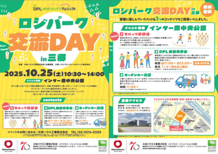 大和ハウス工業が運営するマルチテナント型物流施設「DPL」の見学会も同時開催されます。