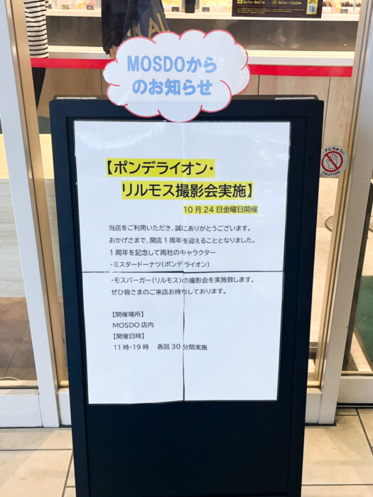 10/24(金)MOSDO(モスド)ららぽーと新三郷店1周年記念!ポンデライオン・リルモス撮影会が開催