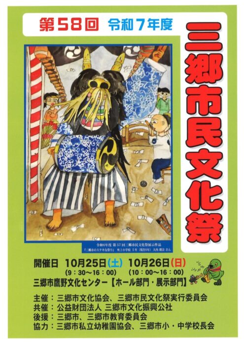 10/25(土)26(日)鷹野文化センターにて「第58回三郷市民文化祭」が開催