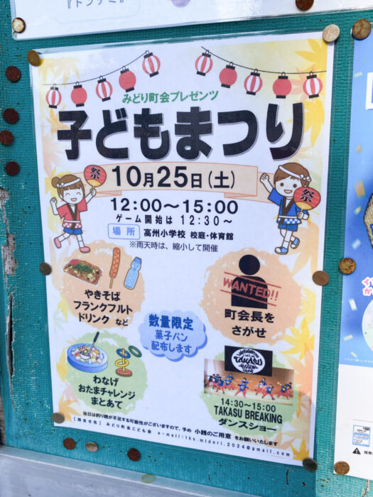 10/25(土)高州小学校にて「子どもまつり」が開催されます。