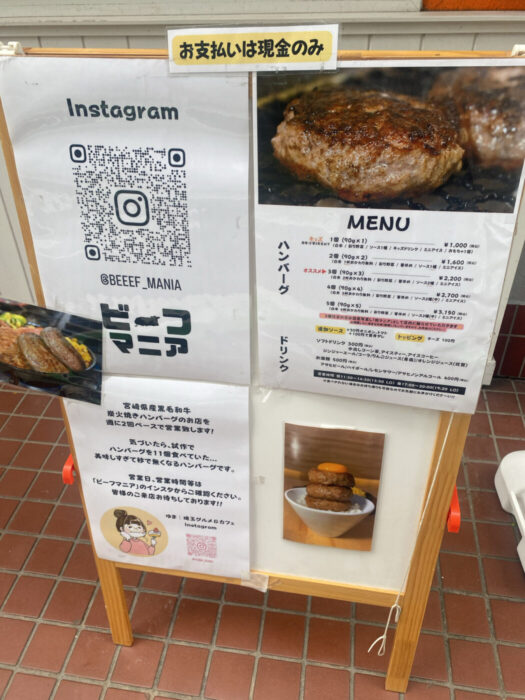三郷駅南口に週2営業、黒毛和牛のハンバーグ定食「ビーフマニア」がオープンしています。