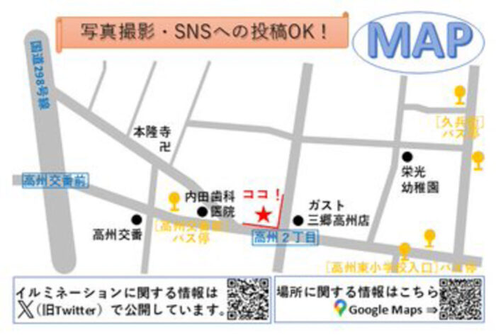高州のガスト近くのお宅前で毎年恒例のクリスマス イルミネーションが11/23(日)16時30分点灯予定となっています。