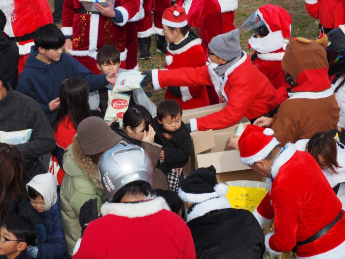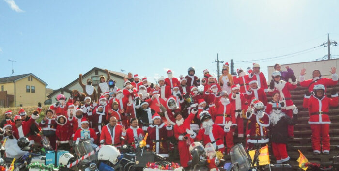 警察より道路通行許可を取得した正式なパレードで、パレード終了後にはサンタライダーから子どもたちへお菓子等のプレゼント配布も行われます。