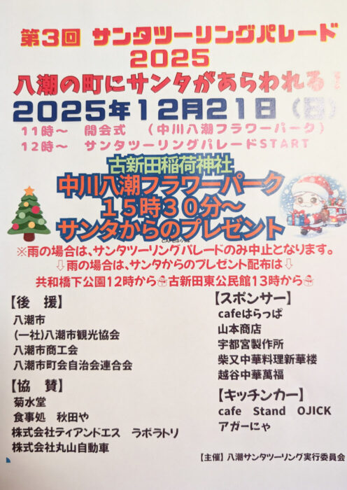 八潮の町にサンタがあらわれる特別なイベント「第3回八潮サンタツーリングパレード2025」が開催されます。