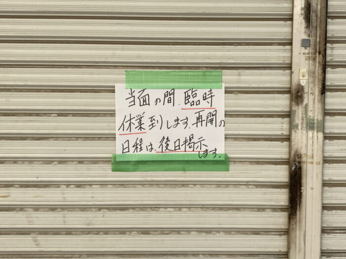 当面の間休業との事で、再開の日程については後日掲示されるとの事です。