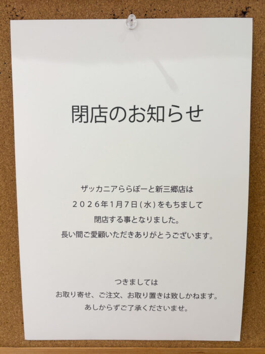 ららぽーと新三郷のキャラクター雑貨店「ZACCANIA(ザッカニア)」が1/7(水)をもって閉店される事が分かりました。