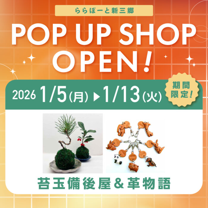 1/5(月)〜1/13(火)ららぽーと新三郷にて「苔玉 備後屋&革物語 POP UP SHOP」オープン