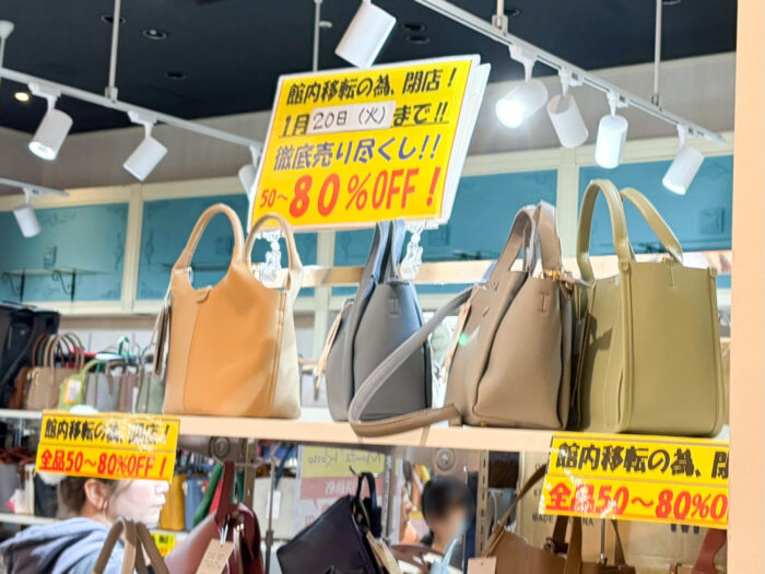 ららぽーと新三郷1階、バッグとおしゃれ小物の専門店「M-Factory」が館内移転のため一時閉店となる事が分かりました。