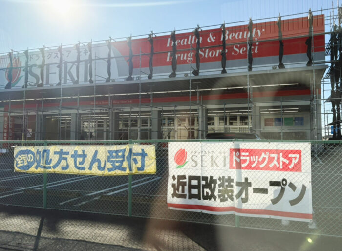 吉川市栄町の「ドラッグストア セキ 吉川店」が改装のため休業中、近日オープン予定