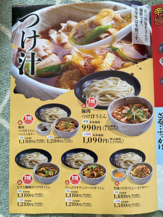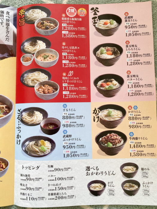 これらのうどんを注文すると、うどん、天ぷら、ごはんが食べ放題となっています。