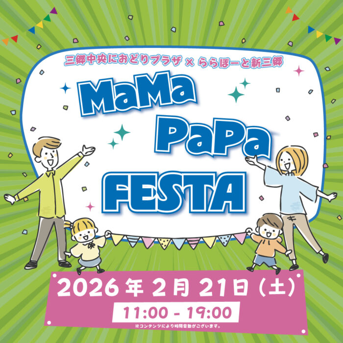 ららぽーと新三郷では、2026年2月21日(土)に「三郷中央におどりプラザ×ららぽーと新三郷 MaMa PaPa FESTA」を開催します。