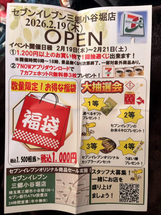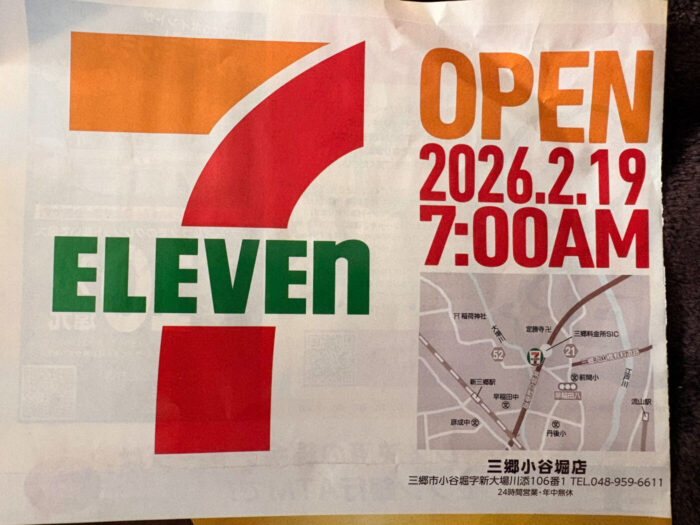 セブンイレブン 三郷小谷堀店が2/19(木)からオープン!2/21(土)までオープニングキャンペーンも