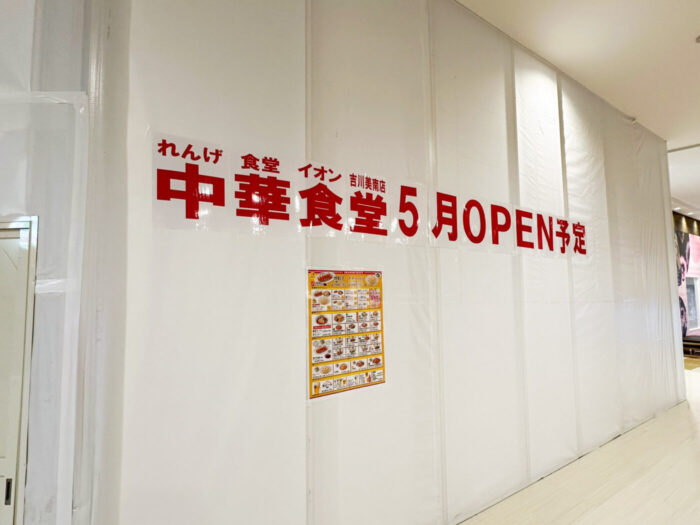 イオンタウン吉川美南の西街区2階に、気軽に楽しめる中華食堂「れんげ食堂Toshu イオン吉川美南店」が5月にオープン予定です。