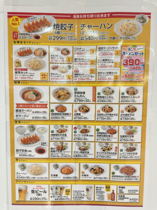 人気メニューには、693円の「ランチ肉ニラ炒め定食」「ランチ肉豆腐うま煮定食」や、660円の「ランチあんかけ生姜たんめん」「ランチ油そば」など、リーズナブルな価格のコスパランチシリーズがあります。