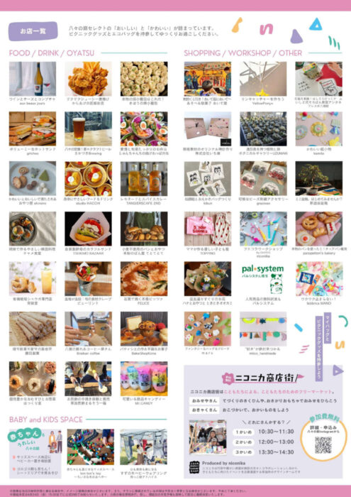 地元グルメに、販売やワークショップ、子どもフリマなど盛りだくさんの内容となっています。