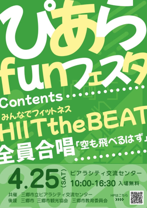4/25(土)ピアラシティ交流センターにて「ぴあらfunフェスタ」が開催されます。